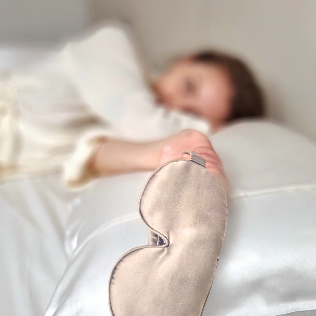 A máscara de olhos em seda é a aliada ideal para uma noite de sono tranquila.
